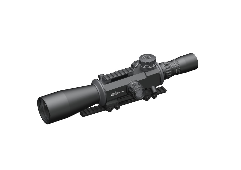 A March 6–60x56 SFP D60V56GFIML a March Optics egyik legnagyobb nagyítású, prémium kategóriás Second Focal Plane (SFP) céltávcsöve, amelyet kimondottan hosszútávú precíziós lövészek, F-Class versenyzők és olyan szakemberek számára terveztek, akik extrém nagy nagyítást, kristálytiszta optikai teljesítményt és finom mechanikai beállíthatóságot igényelnek. A modell a rendkívül precíz 0.05 MIL kattintási értéket ötvözi az akár 60× nagyítással, megvilágított retikulummal és a March híresen stabil mechanikájával.